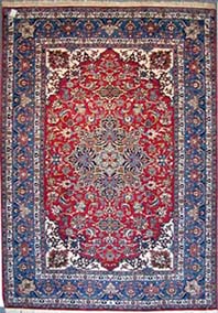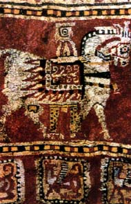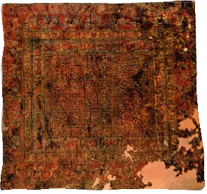第2章 ペルシャ絨毯の歴史 1.【遊牧生活と絨毯の誕生】 年間の降雨量の少ない西アジアの砂漠、山岳地域では、 農耕に適さず、人々は羊を追って遊牧生活を送ってきました。 絨毯の起源は定かではありませんが、1万年位前から続けられている遊牧生活と共に 羊の毛を使った敷物が作られ始めたと考えられています。 羊の肉を食べ、羊の乳を搾ってバターやチーズを作ると共に、 羊の毛や革を使って、羊と共に暮らしてきたのです。 まずは、羊の毛を押し固めてフェルトとしてテントや服、寝具、敷物にしたのでしょう。 その内に糸に紡ぐことを覚え、平織りのキリム(イランではギリムという)として文様のある敷物へと 発展を遂げ、それぞれの部族を示す意匠が生み出されて行くとともに、 更には、パイル結びの絨毯が生み出されたのです(3,000〜5,000年前と推測されている)。 この絨毯は、空気をたくさん含み暖かいばかりか、縦糸も締め糸も擦れないので、 破れにくくて丈夫な究極の敷物として進化を遂げたのです。 かくして、絨毯は西アジアの砂漠・山岳地帯において、 夏や日中の強い日差しを遮り、冬や夜の寒さから身を守るものとして、 遊牧生活にはなくてはならないものとして生み出され、発展を遂げてきたのです。 2.【パジリク絨毯と絨毯の起源】 パジリク絨毯とは、ソ連の考古学者が1949年に、モンゴルのアルタイ山脈のパジリク古墳で発掘し、 現在はロシアのエルミタール美術館に所蔵されている、現存する世界最古のペルシャ絨毯のことです。 この古墳は紀元前500年頃のスキタイ王国の王子の墓と推測され、このパジリク絨毯は、その意匠から アケメネス朝ペルシアからスキタイ王国に贈られたものと考えられています。 ペルシャ絨毯は、80年以上使用出来るとはいえ、あくまでも消耗品であるために、 500年を超えて古いものはほとんど残っていません。 しかし、このパジリク古墳は極寒の永久凍土であったため、埋葬品が朽ち果てずに発見されたのです。 そして、絨毯の歴史を探る上で貴重な資料となっています。 ![]() およそ2,500年前に作られた現存する世界最古のペルシャ絨毯 『パジリク絨毯』(左)の拡大画像 この約200x180cmのパジリク絨毯は、およそ36万ノット/uという高度な技術で織られており、 意匠の完成度の高さから見ても、かなり発展を遂げたパイル結びの絨毯だったのです。 従って、その様な完成度の高い絨毯が織られるようになるまでに500年以上の歴史があったであろうと 考えられることからして、ペルシャ絨毯の歴史は、3,000年以上とも5,000年以上ともいわれているのです。 3.【サファビー王朝とペルシャ絨毯】 サファビー朝ペルシア(1501〜1736年)は、長く続いた異民族支配から脱却し、 ペルシャの統一王朝として栄華を極め、美術工芸の黄金期とさえ言われています。 そして、ペルシャ絨毯もまたこの時代に飛躍的に発展したようです。