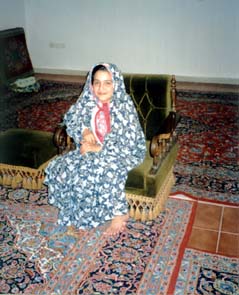 写真はカシャンの絨毯と7歳の少女、女性は7歳になるとチャドールを身に着けます。家の中では黒ではなく